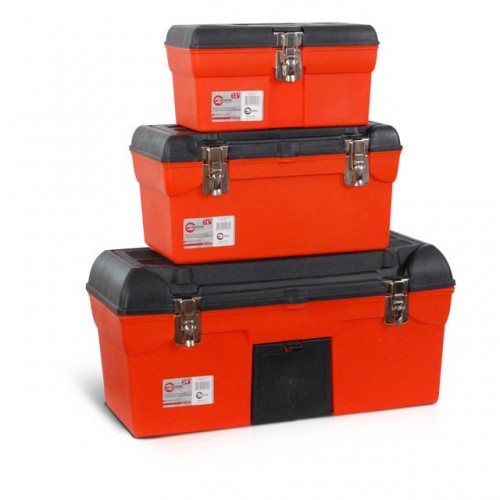 Комплект ящиков для инструментов ТМ INTERTOOL BX-0007 состоит из 3 ящиков разного размера: малого – BX-1113, 13", небольшого – BX-1116, 16.5" и большого BX-1123, 23.5". Ящики выполнены из ударопрочного пластика, закрываются на металлические замки. В корпусе ящиков есть проушина для навесного замка. В крышке каждого из них предусмотрен объемный органайзер для метизов.